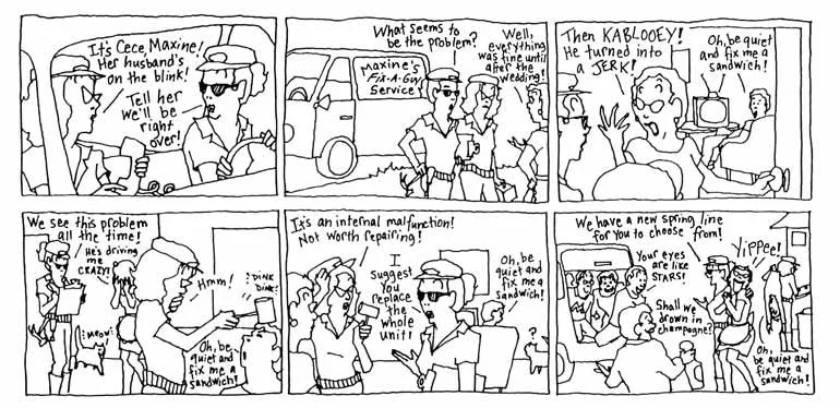 From October 1981 until December 2002, Maxine appeared in a head-scratching combination of publications such as San Francisco Chronicle, Heavy Metal, MS, Glamour, Austin Chronicle, LA Weekly, Utne Reader, Asbury Park Press, MAD, Funny Times, and even a newsletter for Hawaiian polygamists.
